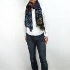 非常に大きなショールサイズで、広げて羽織れば上半身をすっぽりと覆うことができます。縦横の長さも十分にあるため、巻き方の自由度が広がります。程よいボリューム感と立体感を簡単につくることができるため、一巻きでこなれた印象になります。面積もあるので、真夏の室内での冷房対策や膝掛けとしても使いやすくなっています。
