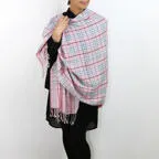 スタンダードな大判サイズで、首に巻くことはもちろん、室内でのひざ掛けにも、肩から羽織る使い方もできます。特に羽織りは、パッと華やかにエレガントな雰囲気に変わります。上半身を覆えるので、着ている服を気にせず合わせることができます。忙しい朝もコーディネートを気にする必要はありません。