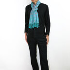 スタンダートな大判サイズで巻いても羽織っても、どちらも使いやすいタイプです。特に羽織は全体の印象がパッと華やかに、エレガントな雰囲気に変化します。
