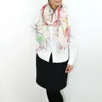 大判サイズのストールで肩から羽織る使い方もできます。春夏の日除けや室内の冷房対策としても使いやすくなっています。