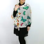 スタンダードな大判サイズで巻きでも羽織でもどちらでも使いやすくなっています。特に春夏の日除けや冷房対策としても使いやすく、ファッションのアクセントとしてなら一年中使うことができます。