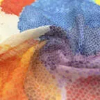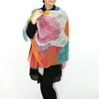 自然な風合いが魅力的なリネンで、お洒落なストールを作りました。ブロックパネル調のカラフルなデザインでアクセントに最適です!