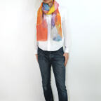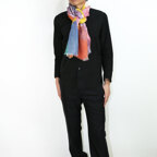 大判サイズのストールで肩から羽織る使い方もできます。春夏の日除けや室内の冷房対策としても使いやすくなっています。