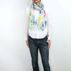 スタンダードな大判サイズで巻きでも羽織でもどちらでも使いやすくなっています。特に春夏の日除けや冷房対策としても使いやすく、ファッションのアクセントとしてなら一年中使うことができます。