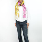 大判サイズのストールで肩から羽織る使い方もできます。春夏の日除けや室内の冷房対策としても使いやすくなっています。