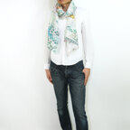 大判サイズのストールで肩から羽織る使い方もできます。春夏の日除けや室内の冷房対策としても使いやすくなっています。