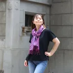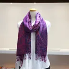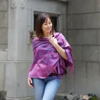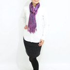 スタンダートな大判サイズで巻いても羽織っても、どちらも使いやすいタイプです。特に羽織は全体の印象がパッと華やかに、エレガントな雰囲気に変化します。