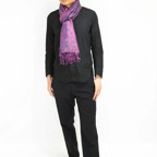 スタンダートな大判サイズで巻いても羽織っても、どちらも使いやすいタイプです。特に羽織は全体の印象がパッと華やかに、エレガントな雰囲気に変化します。