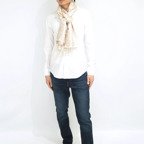 スタンダートな大判サイズで巻いても羽織っても、どちらも使いやすいタイプです。特に羽織は全体の印象がパッと華やかに、エレガントな雰囲気に変化します。