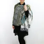 大判サイズのストールで肩から羽織る使い方もできます。春夏の日除けや室内の冷房対策としても使いやすくなっています。