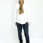 インパクトのあるモチーフが描かれたデザイン。ダイナミックな柄ですが、実際に巻くと想像以上に合わせやすい一枚です。