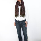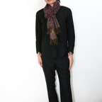 スタンダードな大判サイズで、首に巻くことはもちろん、室内でのひざ掛けにも、肩から羽織る使い方もできます。特に羽織りは、パッと華やかにエレガントな雰囲気に変わります。上半身を覆えるので、着ている服を気にせず合わせることができます。忙しい朝もコーディネートを気にする必要はありません。