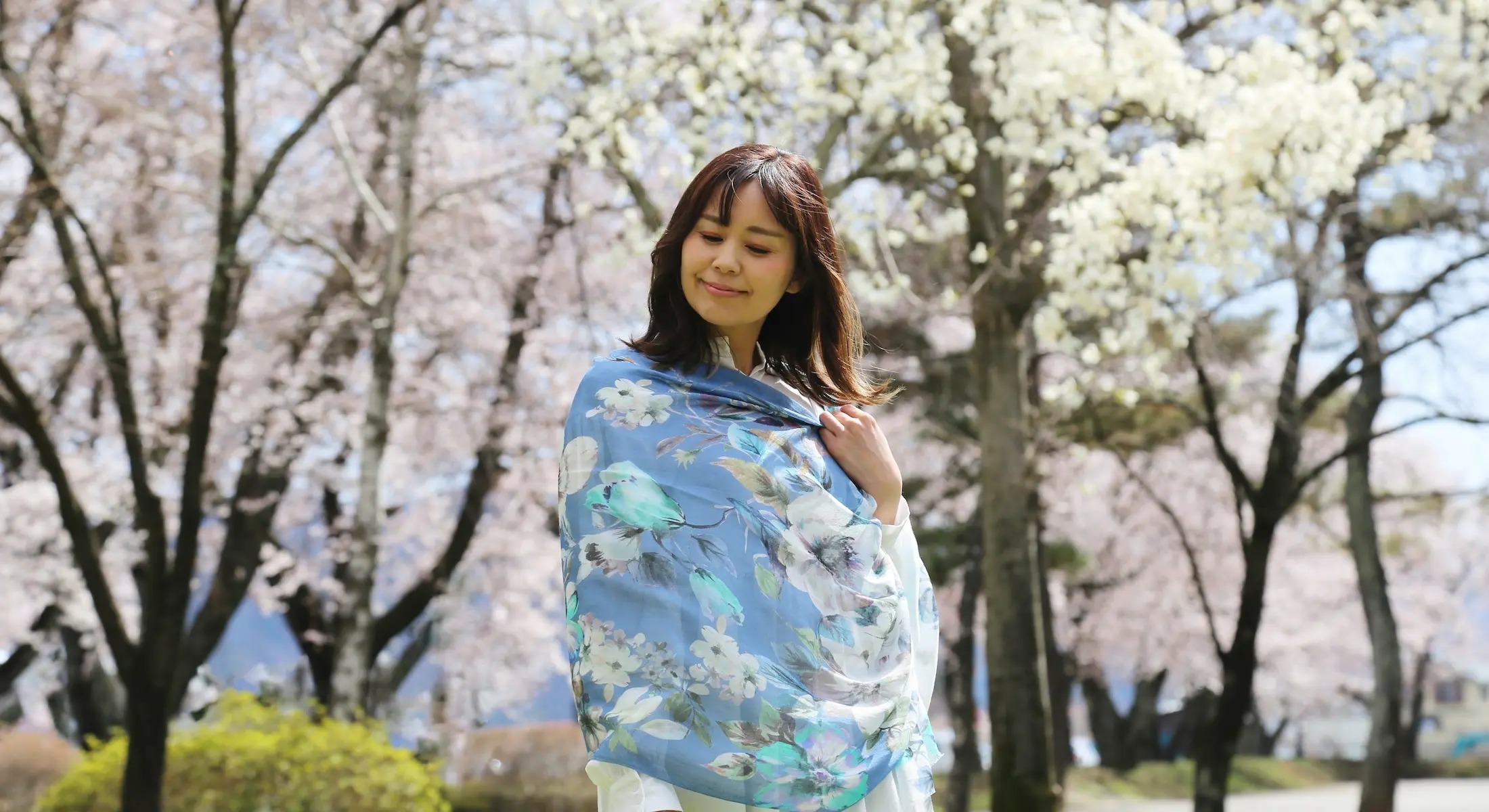 爽やかな色使いと繊細なデザイン。 ゆるっと巻くだけで上品かつ華やかな印象になります。