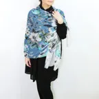 スタンダードな大判サイズで巻きでも羽織でもどちらでも使いやすくなっています。特に春夏の日除けや冷房対策としても使いやすく、ファッションのアクセントとしてなら一年中使うことができます。