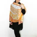 スタンダードな大判サイズで巻きでも羽織でもどちらでも使いやすくなっています。特に春夏の日除けや冷房対策としても使いやすく、ファッションのアクセントとしてなら一年中使うことができます。