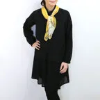 小ぶりなスクエアサイズで、アスコットタイのようにシャツやブラウスの中におさめて使うこともできます。室内でも巻いたままでいられるので使いやすくなっています。