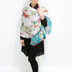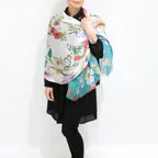 スタンダードな大判サイズで巻きでも羽織でもどちらでも使いやすくなっています。特に春夏の日除けや冷房対策としても使いやすく、ファッションのアクセントとしてなら一年中使うことができます。