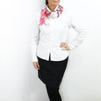 小ぶりなスクエアサイズで、アスコットタイのようにシャツやブラウスの中におさめて使うこともできます。室内でも巻いたままでいられるので使いやすくなっています。