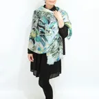 スタンダードな大判サイズで巻きでも羽織でもどちらでも使いやすくなっています。特に春夏の日除けや冷房対策としても使いやすく、ファッションのアクセントとしてなら一年中使うことができます。
