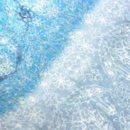 ホライズンブルー&シアンブルー&ホワイトを基調としたデザイン性の高いアシンメトリー柄。 ちらりと覗くスカーレットカラーも華やかさを添え、出す面によって表情の変化を楽しめます。