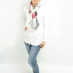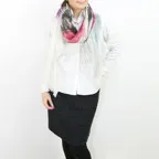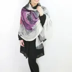 大判サイズのストールで肩から羽織る使い方もできます。春夏の日除けや室内の冷房対策としても使いやすくなっています。