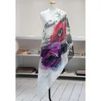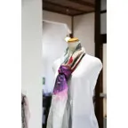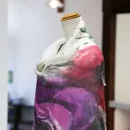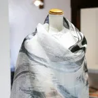 まるで水彩画を映したかのような涼しげなデザインが目を惹く一枚。凛とした美しさを誇る、名品ストールです。
