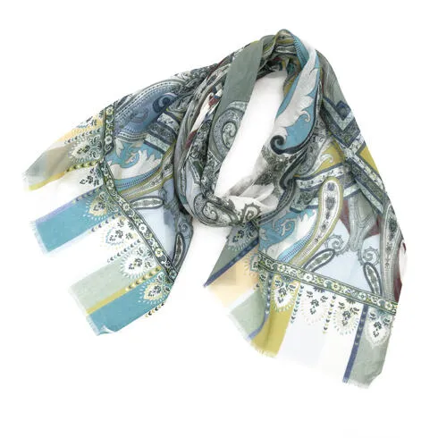 スタンダードな大判サイズで巻きでも羽織でもどちらでも使いやすくなっています。特に春夏の日除けや冷房対策としても使いやすく、ファッションのアクセントとしてなら一年中使うことができます。