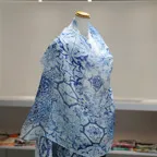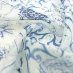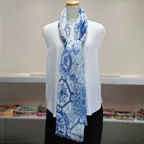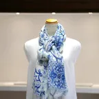 コントラストの効いたオリエンタルブルー&ホワイトの美しいコンビネーション。アクセント効果も高く、シンプルになりがちな夏ファッションのお供に最適な一枚です。