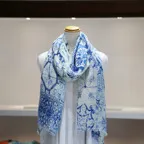 統一感がありながらも高いデザイン性のストール。どんな纏い方をしても安定した表情を見せてくれます。