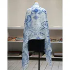 大判サイズのストールで肩から羽織る使い方もできます。春夏の日除けや室内の冷房対策としても使いやすくなっています。