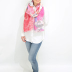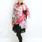 大判サイズのストールで肩から羽織る使い方もできます。春夏の日除けや室内の冷房対策としても使いやすくなっています。