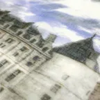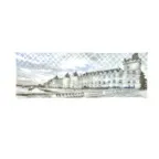 全面に建物が描かれた大胆なデザイン。ゆるっと余裕のあるシルエットが大人の格好よさを引き出してくれます。