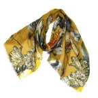 これ巻いて誰に会いに行こう。グラフィカルなフラワーモチーフ。特別な日も、いつもの日も。着け心地がいいから、いつでも巻きたくなる一枚です。