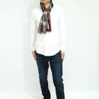 生地感よりカジュアルな普段使いにも、少しフォーマルなシーンでも使いやすいタイプです。スタイルや場所を問わず合わせることができる優れたストールです。