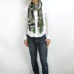 一枚でお洒落が華やかになるプリントストールの装い。でも派手な柄には抵抗あるわ・・・という方にもおすすめしたい一枚です。