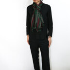 スタンダードな大判サイズで、首に巻くことはもちろん、室内でのひざ掛けにも、肩から羽織る使い方もできます。特に羽織りは、パッと華やかにエレガントな雰囲気に変わります。上半身を覆えるので、着ている服を気にせず合わせることができます。忙しい朝もコーディネートを気にする必要はありません。