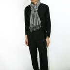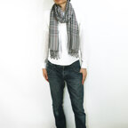 スタンダードな大判サイズで、首に巻くことはもちろん、室内でのひざ掛けにも、肩から羽織る使い方もできます。特に羽織りは、パッと華やかにエレガントな雰囲気に変わります。上半身を覆えるので、着ている服を気にせず合わせることができます。忙しい朝もコーディネートを気にする必要はありません。