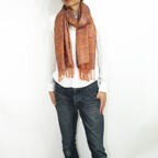 スタンダートな大判サイズで巻いても羽織っても、どちらも使いやすいタイプです。特に羽織は全体の印象がパッと華やかに、エレガントな雰囲気に変化します。