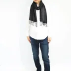 シルク100%の品の良い光沢感と美しいドレープが相まって、フォーマルな場面やパーティーシーンで大活躍します。シャツやブラウス、ドレスやスーツ、ジャケットなどのトップスと相性が抜群!一巻きでいつものファッションを格上げできます。