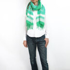 スタンダードな大判サイズで、首に巻くことはもちろん、室内でのひざ掛けにも、肩から羽織る使い方もできます。特に羽織りは、パッと華やかにエレガントな雰囲気に変わります。上半身を覆えるので、着ている服を気にせず合わせることができます。忙しい朝もコーディネートを気にする必要はありません。