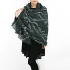 コーディネートしやすいブラックベースの大判ショール。落ち着いた色使いで合わせやすくなっています。
