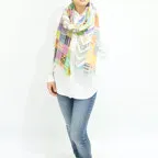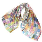 カラフルな色使いの幾何学ストール。多色使いで見た目以上に様々なお洋服に合わせることができます!
