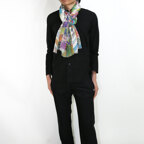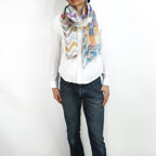 カラフルな色使いの幾何学ストール。多色使いで見た目以上に様々なお洋服に合わせることができます!