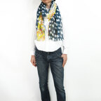 大判サイズのストールで肩から羽織る使い方もできます。春夏の日除けや室内の冷房対策としても使いやすくなっています。