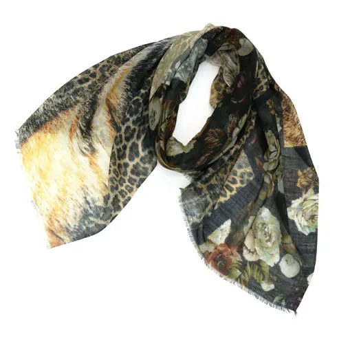 スタンダートな大判サイズで巻いても羽織っても、どちらも使いやすいタイプです。特に羽織は全体の印象がパッと華やかに、エレガントな雰囲気に変化します。
