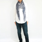 生地の向こうに透けるトップスや素肌が美しく見える、まるでメイクの仕上げに使うパウダーのようなストール。程よいハリ感があり、肌に付かず離れずの質感になっています。絶妙なボリューム感と美しいシルエットも他とは違う大きな魅力です。