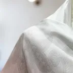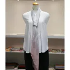 生地の向こうに透けるトップスや素肌が美しく見える、まるでメイクの仕上げに使うパウダーのようなストール。程よいハリ感があり、肌に付かず離れずの質感になっています。絶妙なボリューム感と美しいシルエットも他とは違う大きな魅力です。