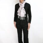 こんなにも淡く美しい表情が出せるのは上質なシルク100%ストールであればこそ。装いに品と華やぎを与えてくれます。