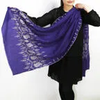 このカシミヤストールには最も繊細なインドカシミール地方ラダック産カシミヤ糸(パシュミナ)が使われています。そのため手織りカシミアストールの中でも最も目が細く繊細な生地となっています。薄くて軽くてやわらかい最上級の一枚です。
