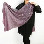 バランスの良い大判サイズで、巻きでも羽織でもどちらも使いやすいストールです。特に羽織は全面に施された刺繍が美しく輝き、サッとあしらうだけでゴージャスな雰囲気に変化します。